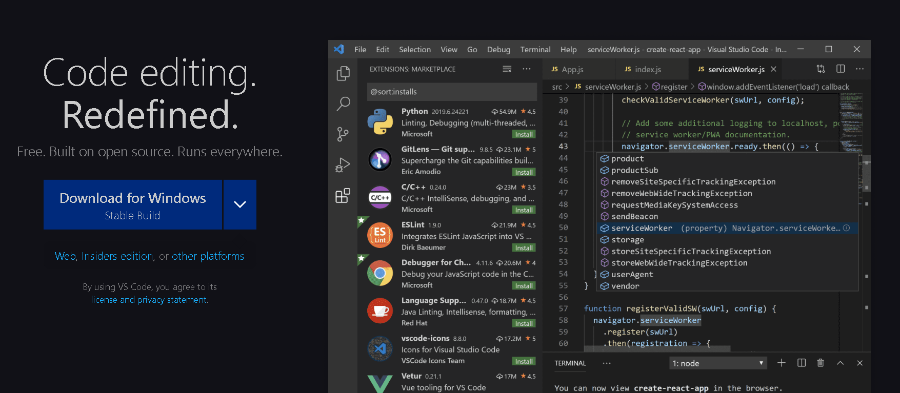 vscode는 MS에서 무료로 배포되는 ide툴로 다양한 extension을 사용하여 프론트앤드 및 node와 같은 백앤드 개발에 매우 넓게 사용하고 있다.